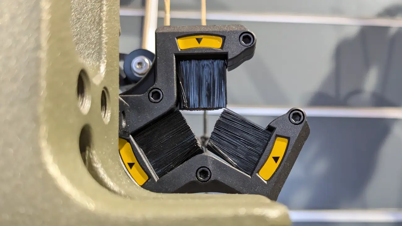 Der Pfeil liegt auf den Spitzen dieser Borsten auf, wodurch die Kontaktfläche minimal ist. Diese Konstruktion reduziert die Reibung deutlich gegenüber traditionellen Auflagen.